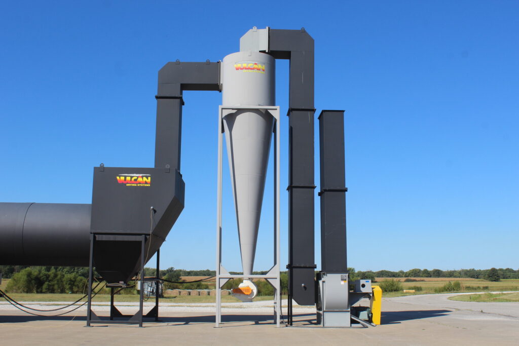 Vulcan Drying Systems 1D3D 32,371 ACFM cyclone new surplus. Body of cyclone is 10-gauge carbon steel. Structure is 1/4″ steel 4×4 box tube legs and braces. No ductwork or airlock included. $10,000